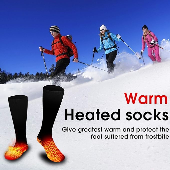 - Cotton Blend Rechargeable Heated Socks for Men Women Ski Socks
