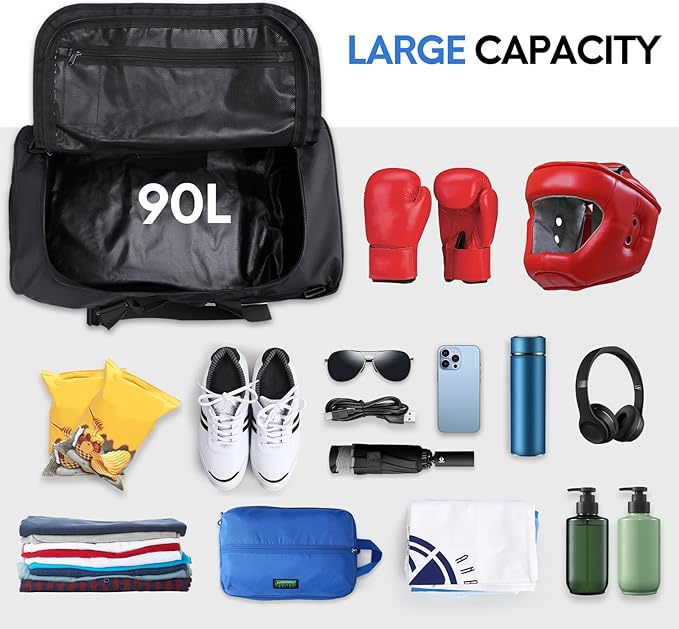 Haimont Gym Duffel Backpack Bag for Men Large Sports Duffle Bags with Backpack Straps for Hiking Travel Weekender Workout, Water Resistant, Black, 90L