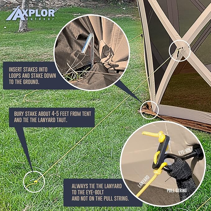 AxplorOutdoor Pop Up Canopy Screen Tent 10x10 | Camping Gazebo | Portable Outdoor Screened Room | Standing Height 5-Sided Camper With Carry Bag