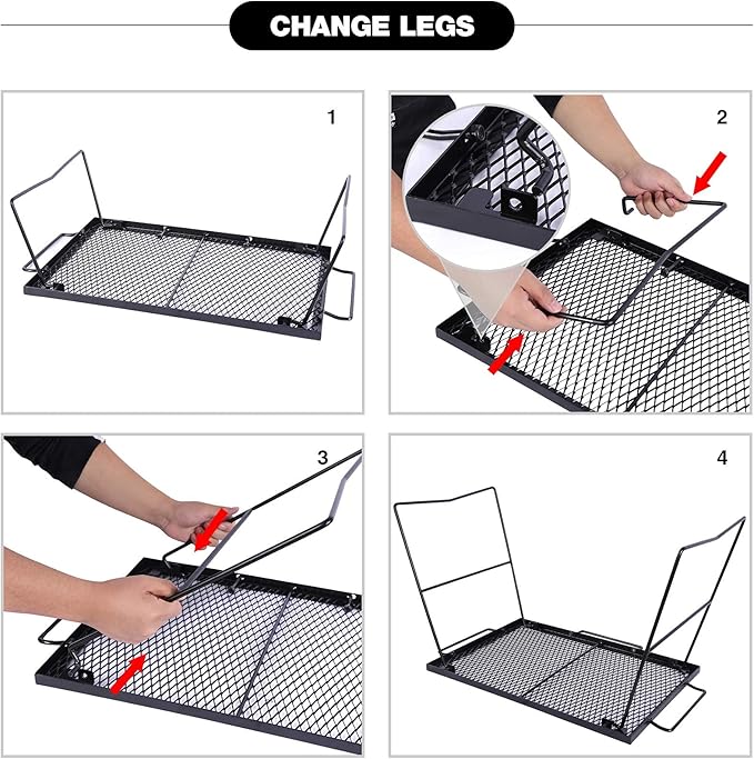 - Two height design: Change the length by changing the leg 20cm/43cm height to fit the fire. Easy and stable to use