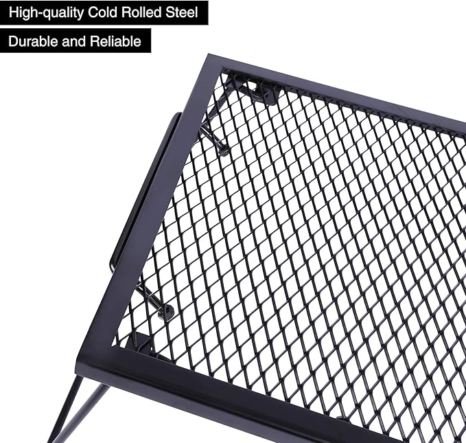 - Material: The heavy-duty folding campfire grill is made of high-quality cold rolled steel, which is durable and reliable in performance