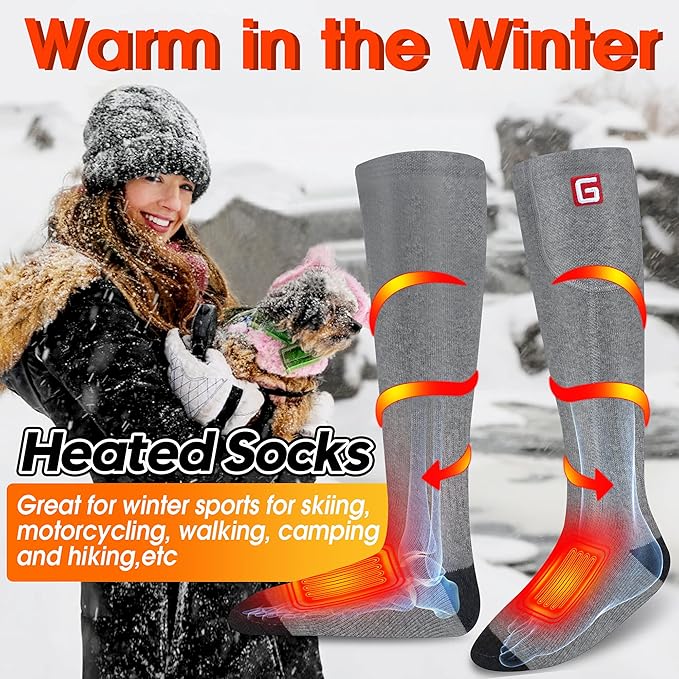 - 🎅Perfect For Winter Sports and Outdoor Activities: Health electric reachargeable battery heating warm socks keep you warm and comfortable all day, perfect for hiking, skiing, snow ice, outdoor in the cold weather for men women thermal socks. Cold feet can often take the fun out of any outdoor activity. With these electric thermal socks you can hunt, camp, ski. Anyone who is outdoorsy or living in winter temperatures can have fun in the snow using these electric hunting socks.