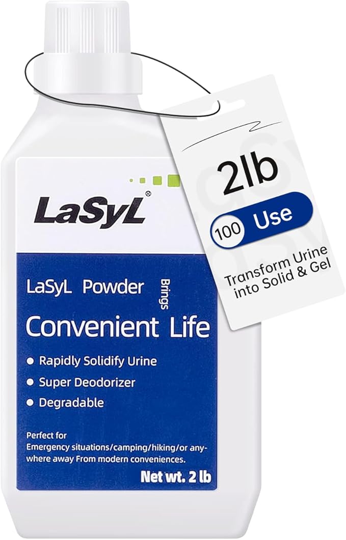 - Super Absorbent Powder: How to go to the toilet whenever and wherever there is no toilet on the journey? LaSyL has developed a liquid-absorbing powder. It can quickly solidify human and pet bodily fluids into a firm and stable gel state. It's a simple and reliable way to dispose of poo in a dignified manner