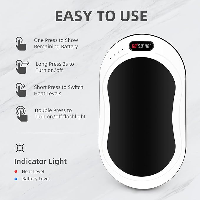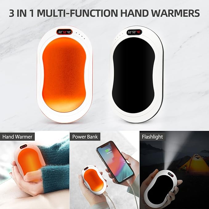 - LONG-LASTING BATTERY POWER: Equipped with a 10,000mAh lithium rechargeable battery and a convenient USB charging port, you can enjoy up to 12 hours of hand-warming and keep your electronic devices charged even when you move.