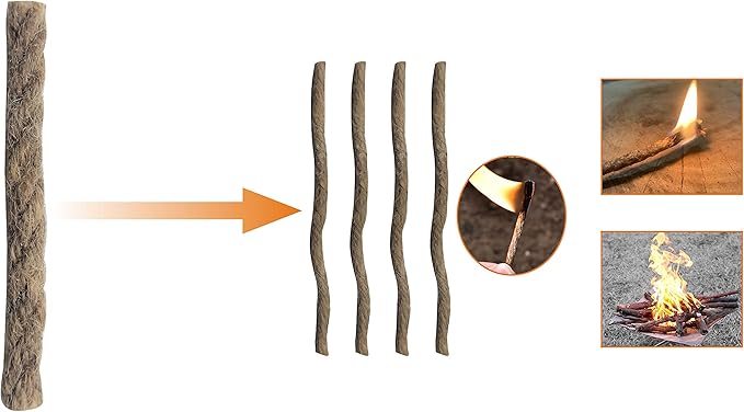 - The wax infused jute rope is 0.3 x 2.6 inch, unwind the braided ropes and fray them by twisting the fibers a part until they are very fine and fluffy. Place tip of ferro rod or match close to frayed tinder rope so the sparks fall directly onto them, it works in all weather condition.