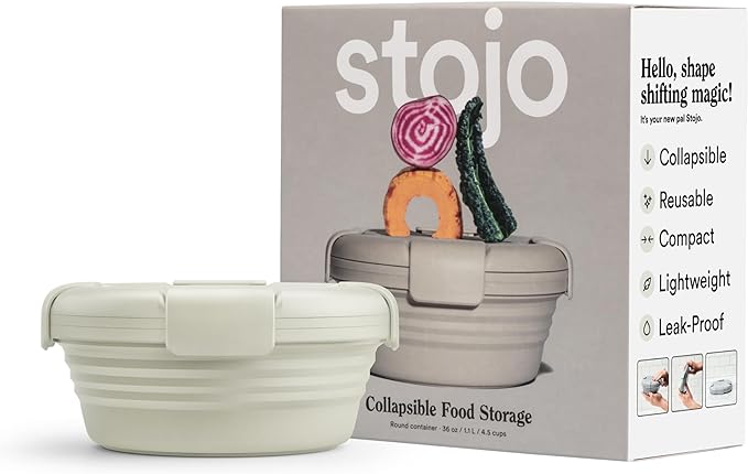 - Collapsible bowl: It’s literally never been easier (or more fun) to prep, store, and take food on the go! This compact bowl collapses down to just 1.3 inches. The 36 oz Stojo Bowl holds up to 4.5 cups, and is made for the kitchen as much as the commute. It stores nested and flat to save space, then pops open to upgrade your meal prep, leftovers, and work lunches. This Oat container is going to look right at home in your kitchen cabinet.
