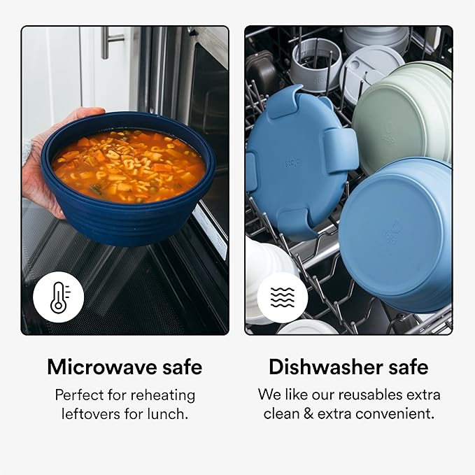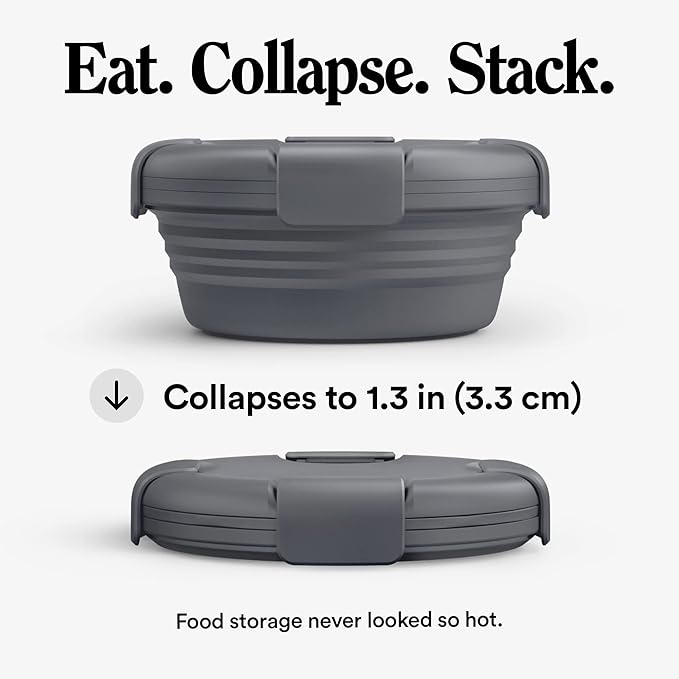 - Collapsible bowl: It’s literally never been easier (or more fun) to prep, store, and take food on the go! This compact bowl collapses down to just 1.3 inches. The 36 oz Stojo Bowl holds up to 4.5 cups,and is made for the kitchen as much as the commute. It stores nested and flat to save space, then pops open to upgrade your meal prep, leftovers, and work lunches. This Carbon Grey container is going to look right at home in your kitchen cabinet.