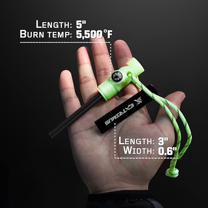 Extremus 6-in-1 Magnesium Fire Starter with Striker, High Temp Magnesium Rod