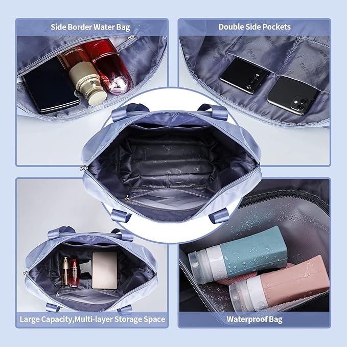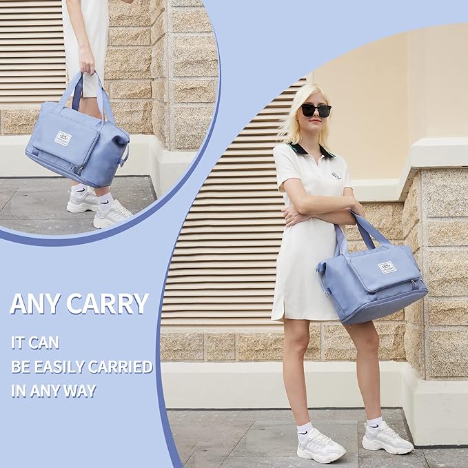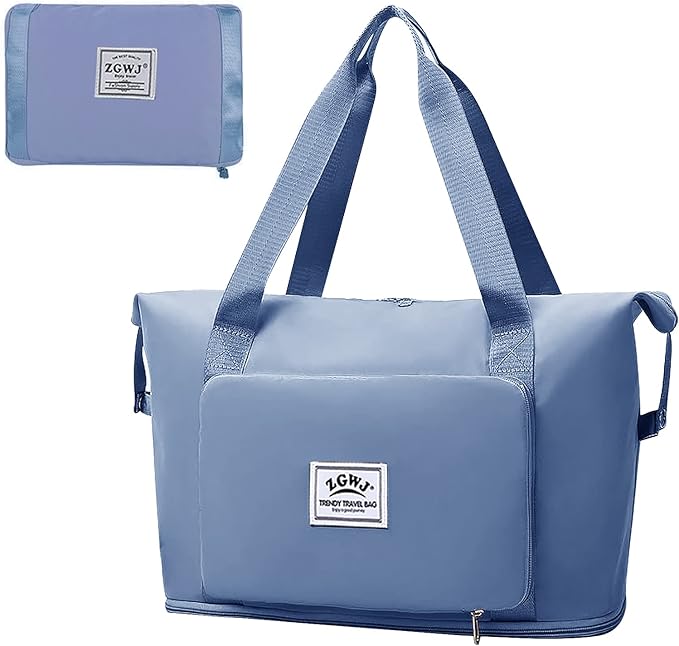ZGWJ Expandable Travel Duffel Tote Bag - Foldable Overnight Weekender, Carry-On, Swim & Gym Bag - Fits Spirit Airlines Personal Item Size - Lightweight, Waterproof & Durable with Trolley Sleeve,Blue