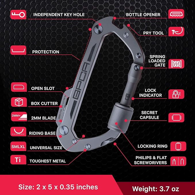 - MULTI-PURPOSE APPLICATIONS: Used for daily life, attached to the EDC/Camping/Hiking backpack, hammocks, camping, or use as a keyring. The robust gate ensures a strong and secure hold, making it perfect for attaching keys, water bottles, camping gear, and more. Securely clip keys, water bottles, and gear to your belt, backpack, or purse for easy access on the go.
