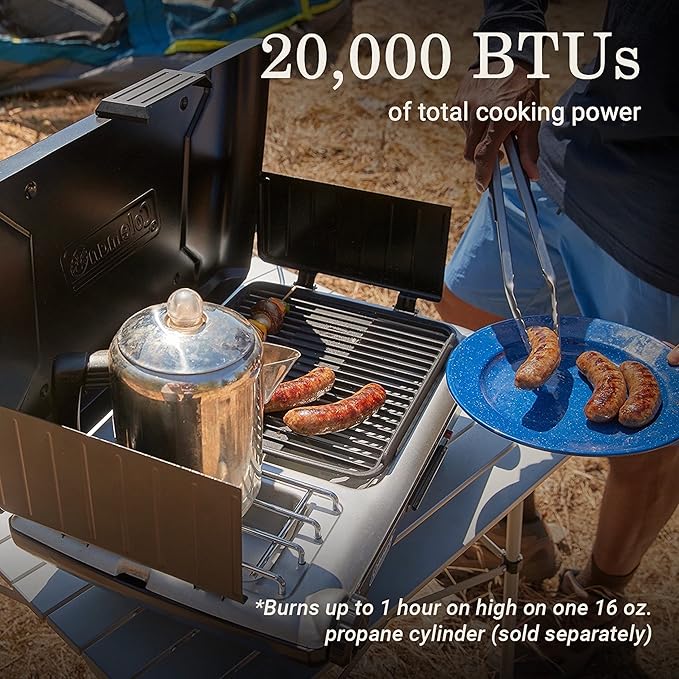 - BURN TIME: Up to 1 hour on high on one 16 oz. propane cylinder (sold separately)