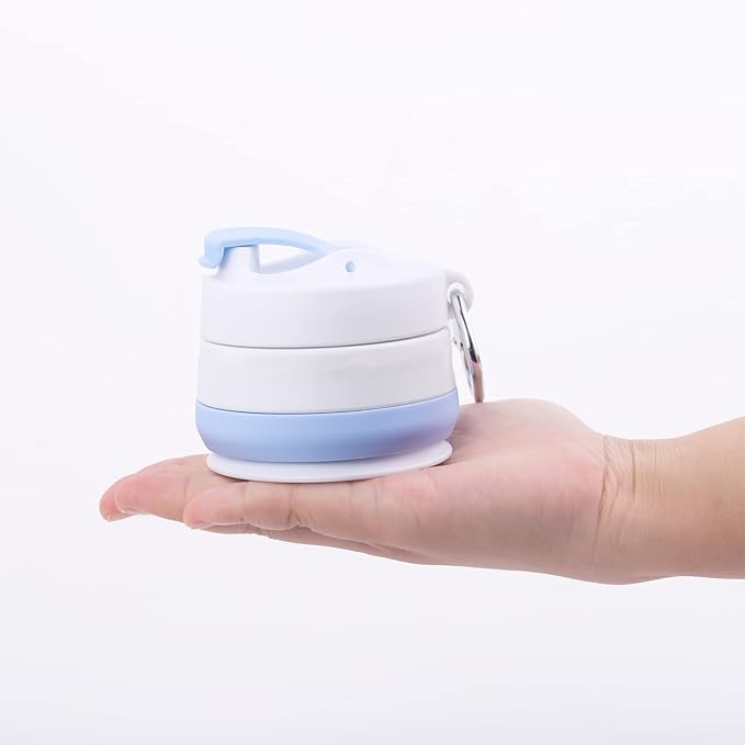 - [Small Size but 20 oz] The size of cups before folding is 4.17*6.45 inches and after folding is 2.63*3.89 inches. The silicone material of EASYXQ collapsible travel cup is light and strong. When you are outdoor camping, hiking or travelling, the small Collapsible cup is good choice.