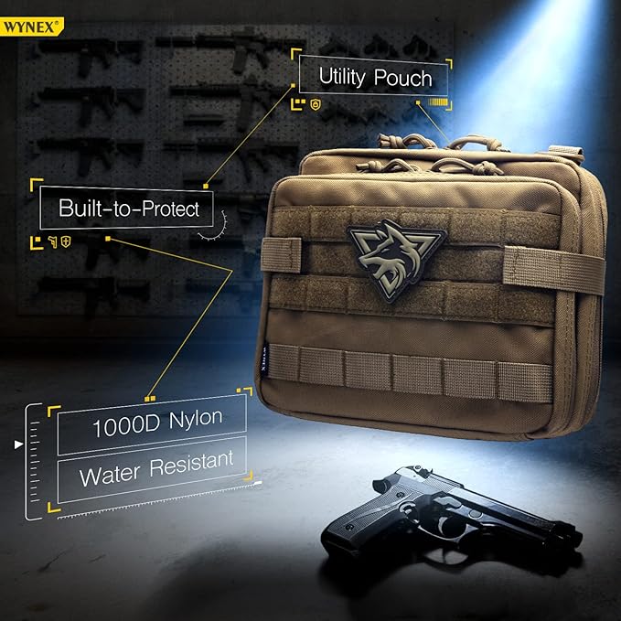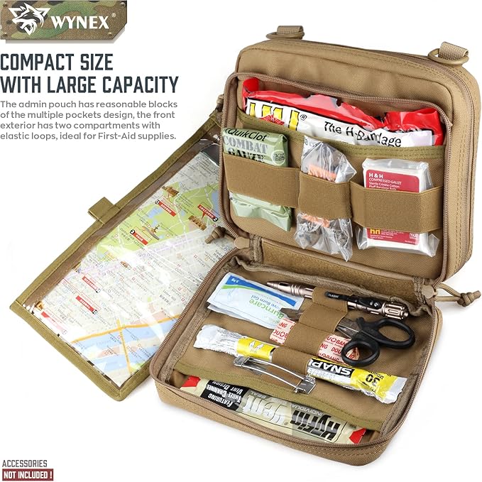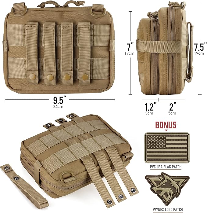 WYNEX Tactical Large Admin Pouch of Double Layer Design, Molle EDC EMT Utility Pouch with Map Sleeve Modular Tool Pouch Large Capacity Flag Patch Included