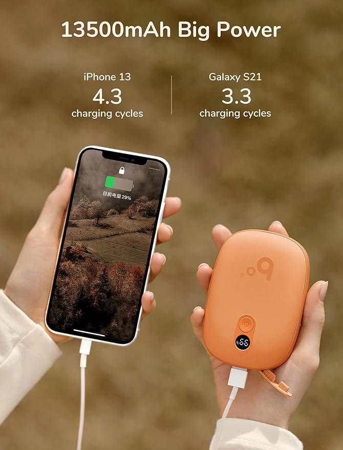 - 🔋【13500 mAh Powerful Battery】JISULIFE NS04 Rechargeable Hand Warmer has the largest battery capacity on the market. It can support 7-16 working hours after being fully charged. The power bank function can also charge your mobile phone for emergencies.