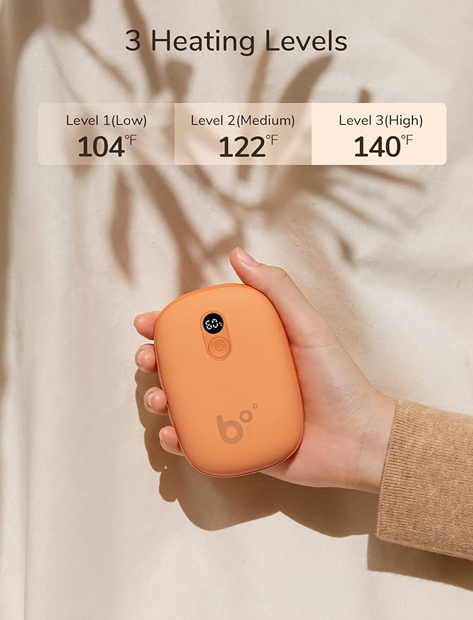 - 🔥【3 Fast Heating Levels】Electric Hand Warmer adopts constant temperature heating technology, which can heat up quickly in 3 seconds. There are 3 different heating levels to meet your needs [104℉ (40℃)], [122℉ (50℃)], 140℉ (60℃)].