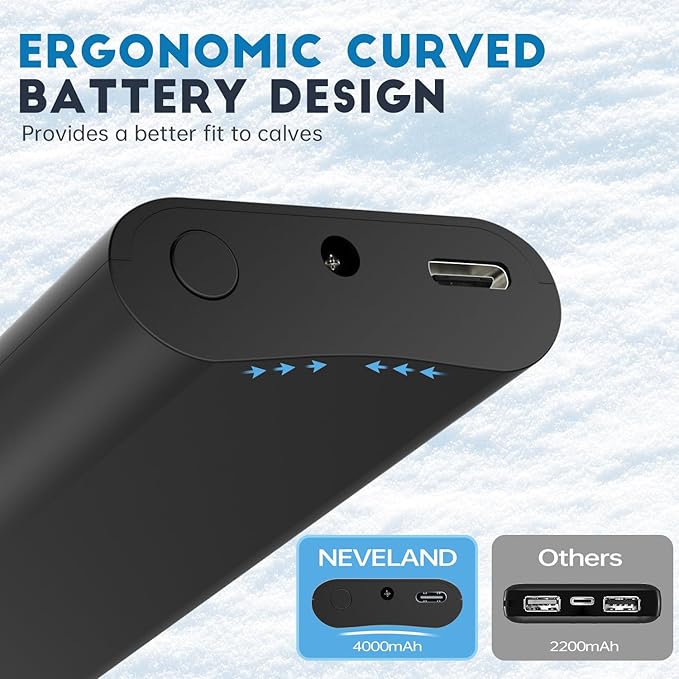 - 【Upgraded Heating Area】- Compared to traditional electric heated socks, the Neveland heated socks for men and women feature invisible heating area with precise stitching and soft embedded heating elements, distributed in the ball of the foot, toe and ankle area, heat quickly and you can feel the temperature in 30 seconds. Just connect the battery, then adjust the temperature level through the remote control.