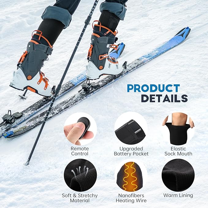 - 【Best Gift Choice】-The heated sock is suitable for many winter outdoor activities such as skiing, hiking, fishing, hunting, biking, and more. Not only can they help keep your feet warm, but they can also promote blood circulation and reduce soreness. They make the best gift choice for your family and friends, providing warmth to the people you love.