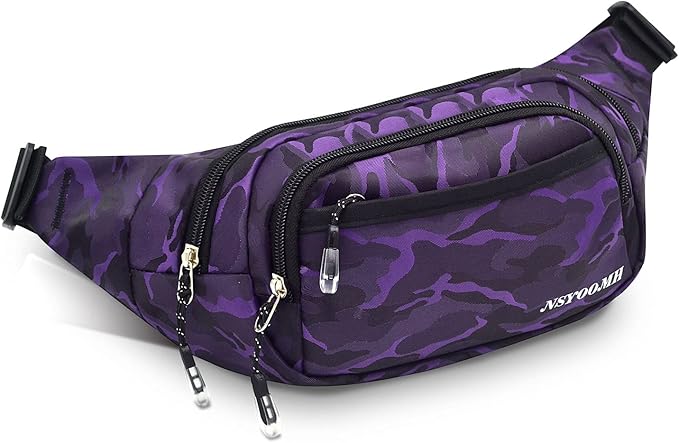 Large Fanny Packs for Women, 5-Zipper Pockets Water Resistant Practical Waist Bag, for Outdoor Running Cycling Sports Travel Hiking Camping Fishing Fashionable Camo Belt Bags