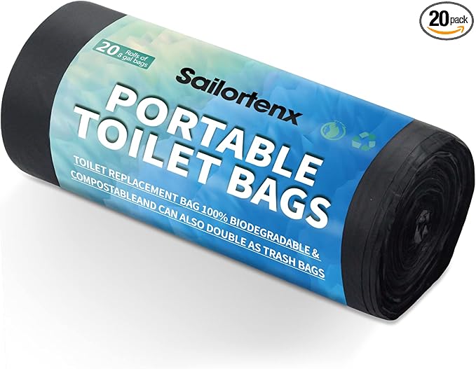 - NOTICE 🌱🌱🌱🌱🌱 Sailortenx toilet Bags are designed to fit all kinds of portable toilet seats. The disposable biodegradable portable toilet bags that are 8 Gallon sized work without leaks and you change it out within 24 hours of use!!!