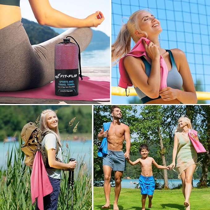 Fit-Flip Travel Towel - Compact & Ultra Soft Microfiber Camping Towel - Quick Dry Towel - Super Absorbent & Lightweight for Sports, Beach, Gym, Backpacking, Hiking and Yoga