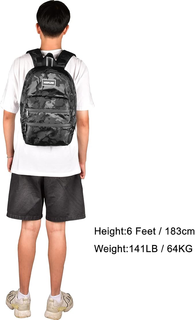 - 【Water Resistant Fabric】Casual daypack made by Waterproof and durable camouflage nylon exterior material, very light weight backpack
