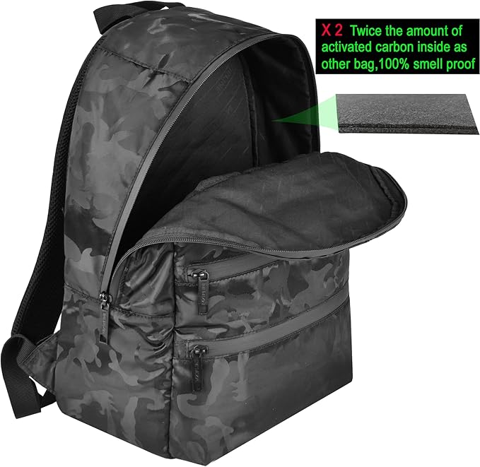 Mini Backpack Bag-Smell Proof-USB Charging Port Daypack Travel bags With Carbon Lining for Men & Women Travel (Camouflage Black)