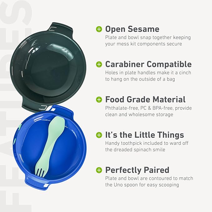 - Secure Design: The GoKit is ingeniously crafted to hang from a pack strap via a tether hole, which also doubles as a lock - preventing it from opening during hikes and backpacking adventures. Moreover, the plate and bowl feature side handles for easy holding when a table isn't available