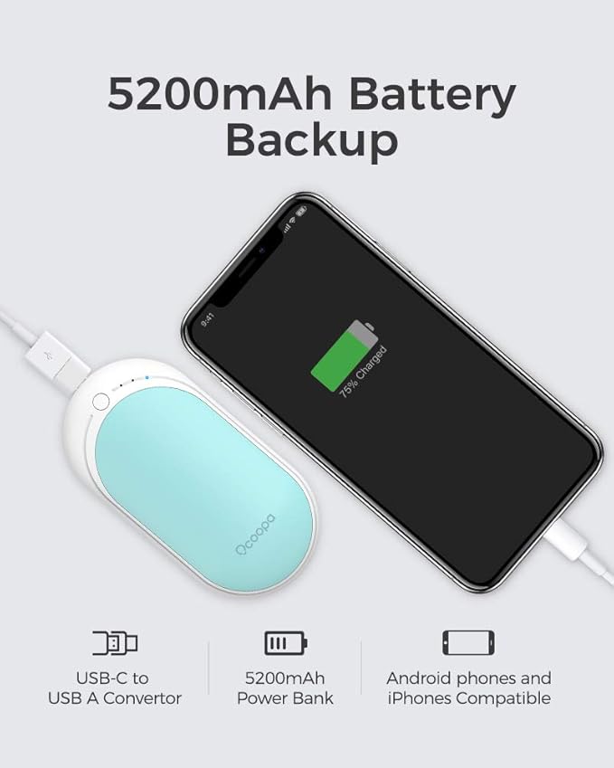 OCOOPA Hand Warmers Rechargeable, 1 Pack 5200mAh Electric Portable Pocket Heater, Heat Therapy Great for Raynauds, Hunting, Golf, Camping, Women Mens Gifts