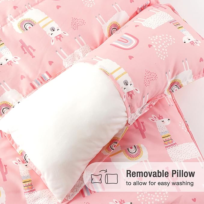 Bunnikins & Clover Toddler Nap Mat with Removable Pillow, Nap Mats for Preschool, Easy Clean Toddler Nap Pad for Kindergarten, Kids Sleeping Bag for Travel Camping