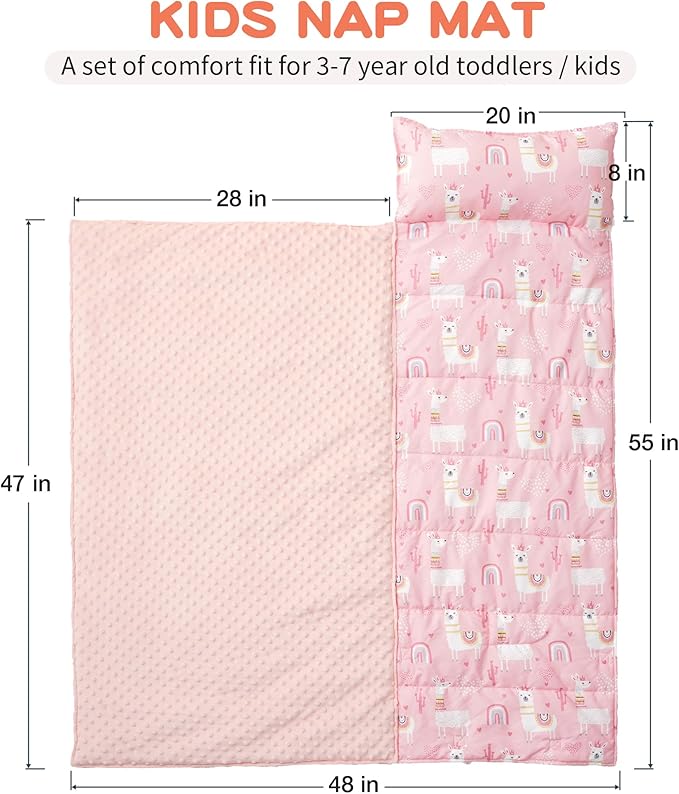 - ALL PURPOSE NAP MATS: The nap mat blanket simplifies life for both parents and kids. This set consists of a built-in sleeping pad, a plush blanket, and a pillow that can be removed when machine washing the mat.