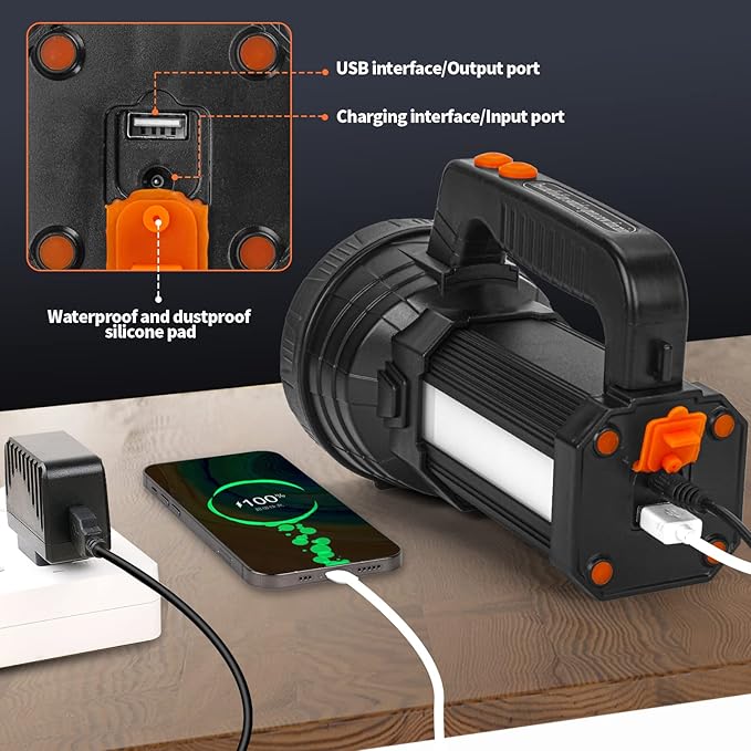 - ➤ POWER BANK FUCTION: The rear of the spotlight have a USB interface can serve as a power bank for your mobile phone, camera, digital product in emergency.
