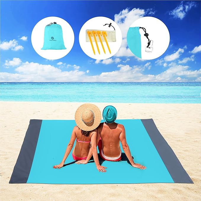 - A Better Time At The Beach: This big beach blanket sand proof is the essential beach accessories or beach gear you need when getting some vitamin sea! Dry sand shakes right off, it does not stick to sand resistant beach blankets or picnic blankets. For wet sand a spray of water will do the job. With quick drying materials, our sand blanket dries fast. Great sand free beach blanket for hassle-free outdoor fun.