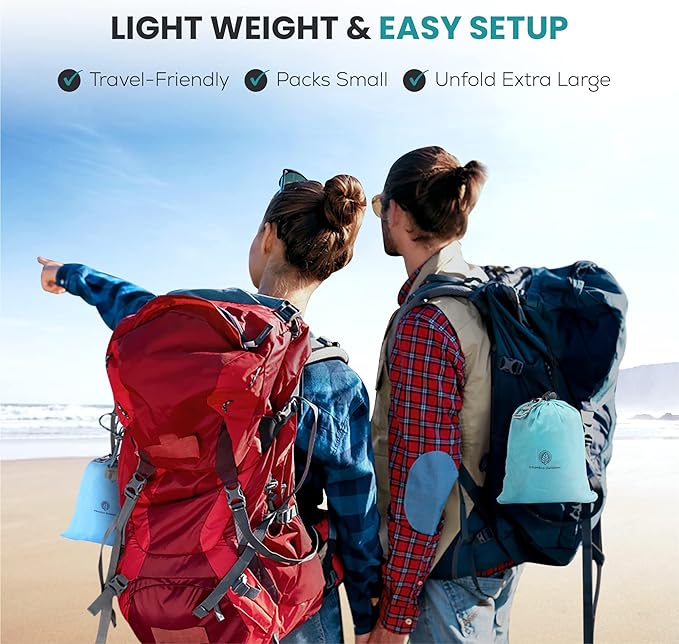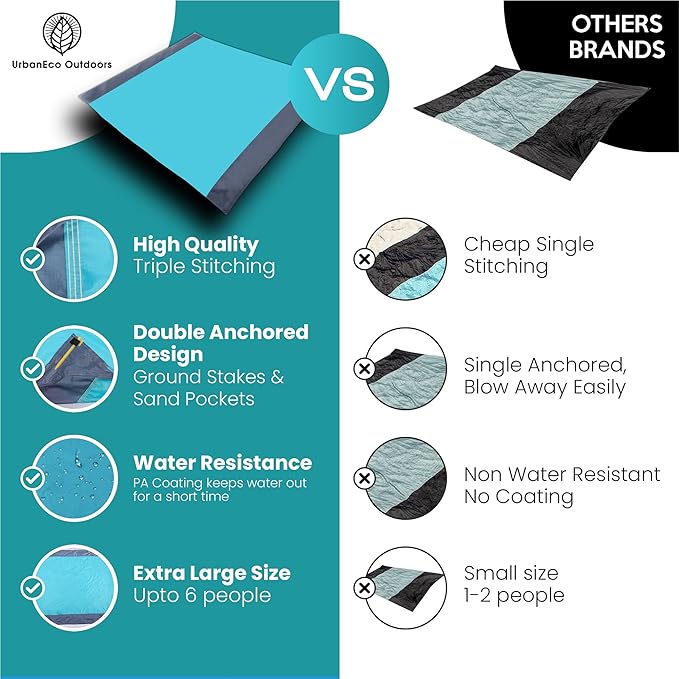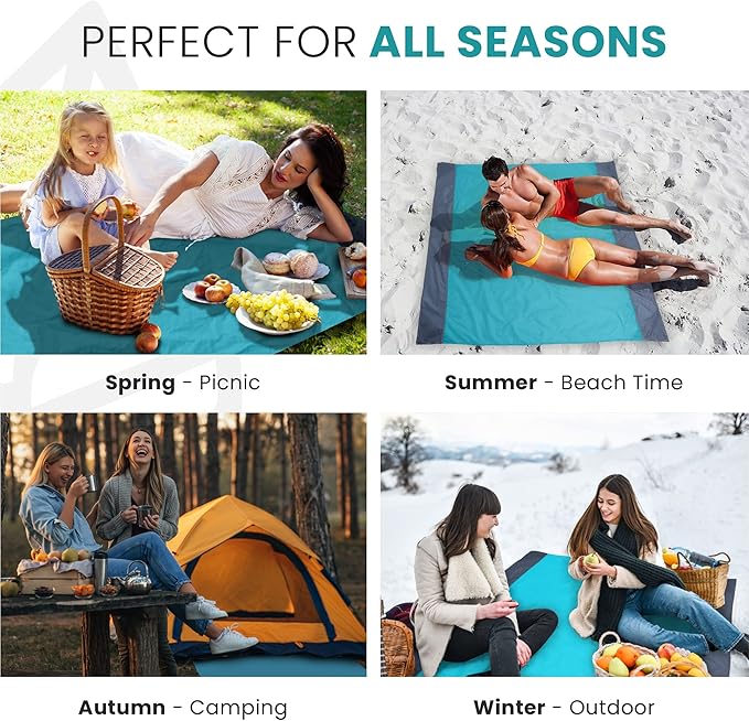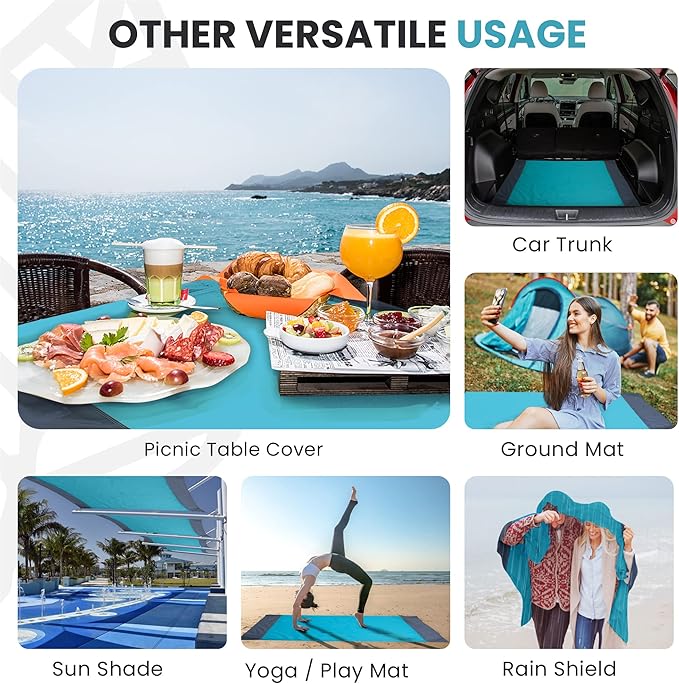 - Quick Dry & Water Resistant: This sheet styled oversized beach blanket keeps you clean and dry in the outdoors. Though it's not 100% waterproof, with a water resistant outdoor blanket like ours, you'll keep water at bay, so you enjoy your day with our water resistance blanket. Our waterproof beach mat sandproof is versatile in design. Perfect as an outdoor picnic blanket, sand free beach mat or practical solution to take to festivals, concerts, gatherings and vacations.