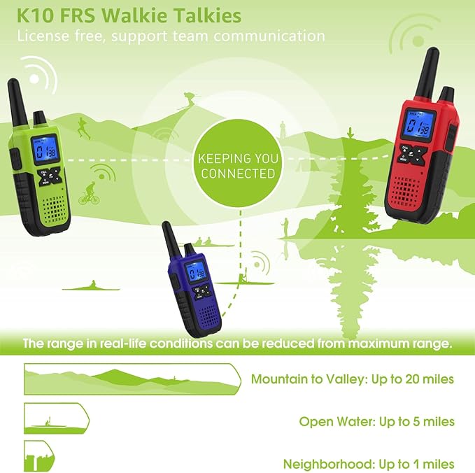 - 【Clear Conversations, Longer Distances】 : Say goodbye to communication barriers, and hello to clarity. The walkie talkies for adults boast an impressive long-range transmission and better sound technology, keeping you connected over vast distances when it matters most, ensuring uninterrupted, crystal clear sound even in noisy environments. Great for family & team engaging in various indoor or outdoor activities such as coordinating a festival or hiking through the mountains