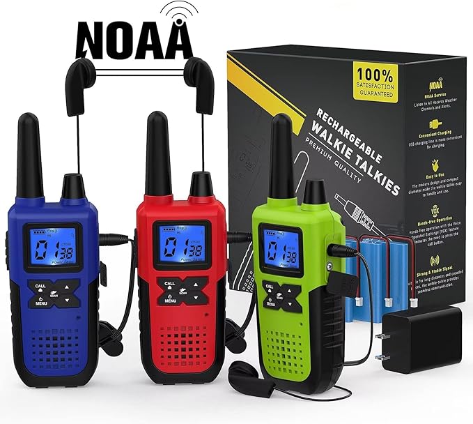 - 【NOAA Weather Service Integration】 : Get instant NOAA alerts to stay a step ahead of the weather, even when there's no cell service in remote areas. Our walkie talkies offer NOAA's National Weather Service access, keeping you alerted on all hazards weather channels and updates. Whether the skies are clear or the weather turns severe, your family outings are safer and more enjoyable, with less worry about the unpredictability of nature