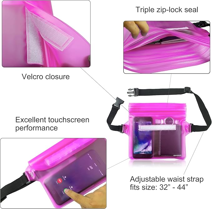 • 100% Waterproof - Triple zip-lock seal and a velcro closure, allow you to dive in the depth up to 32 feet (10 meters) underwater. Keep your phone, wallet, license and other valuables dry while you get totally wet! Protects your phones and wallet from water, snow, sands, and dust.