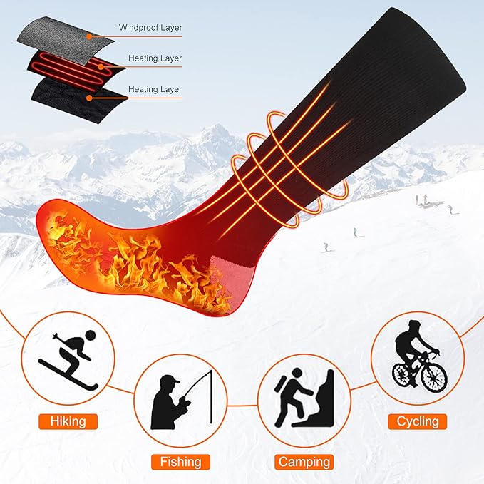 Heated Socks, Battery Rechargeable Electric Heating Socks, Thermal Warm Socks for Men Women Hiking Camping Winter Footwarmers