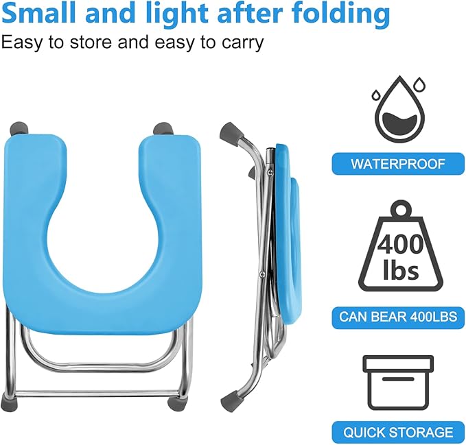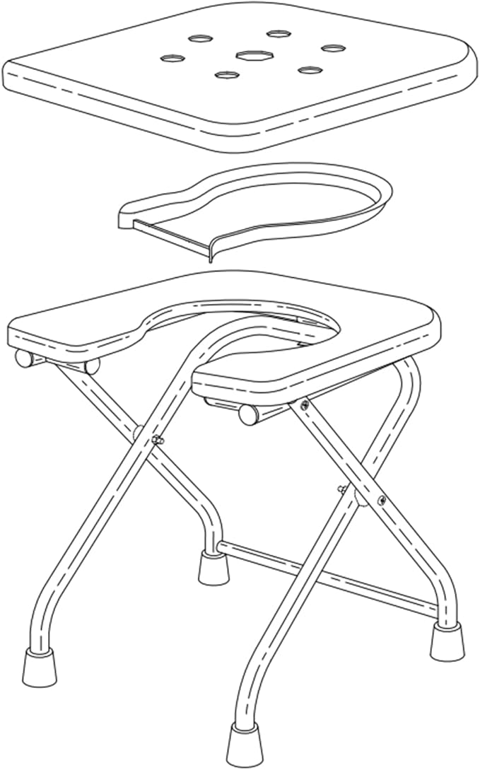 - 【Suitable for All Ages】After Assemble: 16.9"x14.5"x14.5", Folded size: 22"x14.5"x6.3". Seat Hole Size: 12.2"x8.3". Perfect height for comfortable sitting, cover the Lid it can change to portable seat or shower seat. The unique plastic ring is designed for U-shaped toilet seat, toilet bags will be held in place by this removable plastic ring.