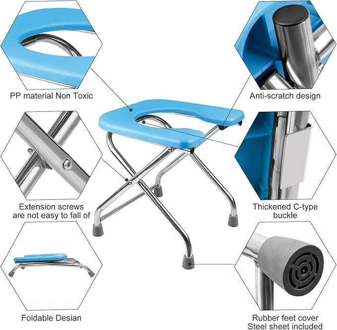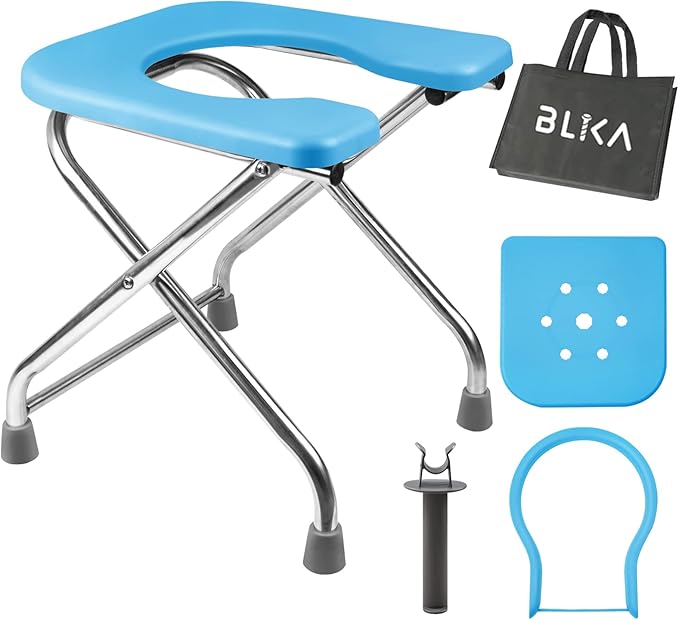 BLIKA U Shaped XL Portable Toilet for Camping, 400LBS Portable Folding Toilet for Adult, XL Stainless Steel Portable Toilet, Truck Toilet Portable