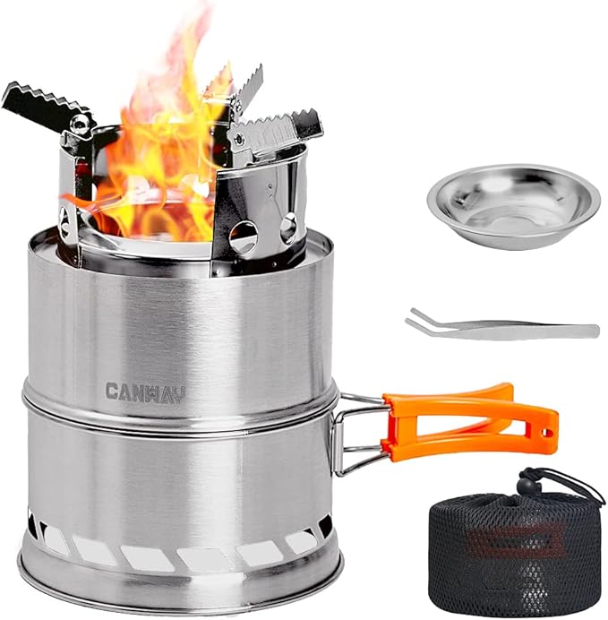 CANWAY Camping Stove, Portable Stainless Steel Wood Burning Survival Stove with Nylon Carry Bag for Outdoor Backpacking Hiking Traveling Picnic BBQ