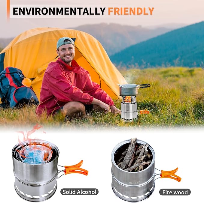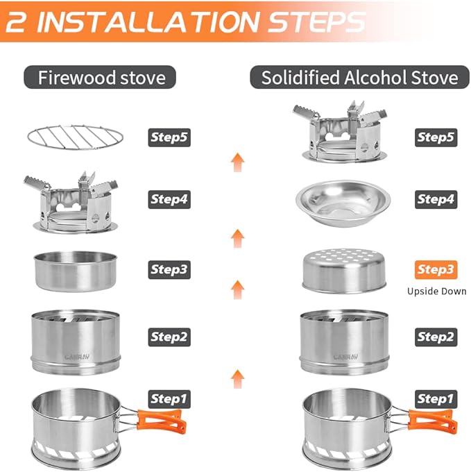 - 🔥Sturdy Camping Stove: Made of high-quality stainless steel.This backpacking stove with 3 arms pot support base provides safe and stable cooking platform and distributes heat evenly. The style 2 is also suitable for 1-2 people use, but it is higher then style 1, so that it is easily get the firewood added without picking up the pot or pan.