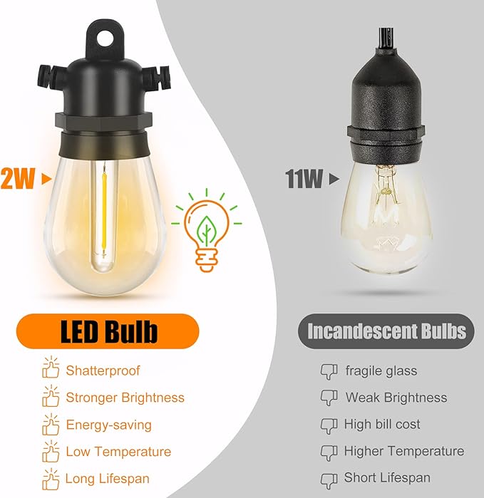 - Safety Certified: UL and ETL certified, these string lights have a built-in fuse and heat resistant copper wire.