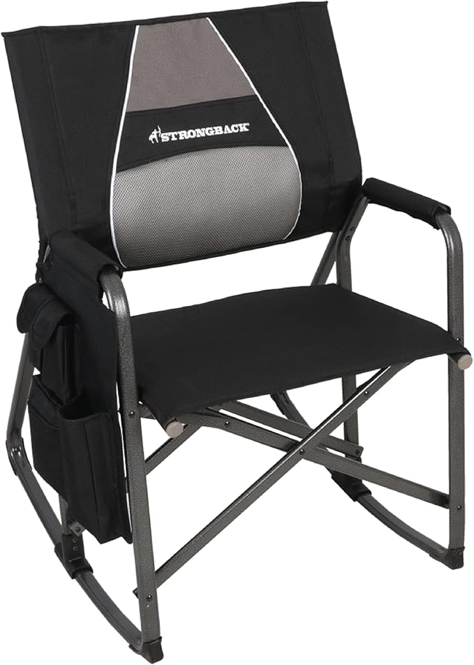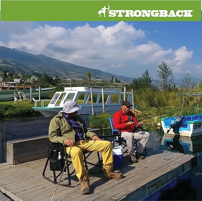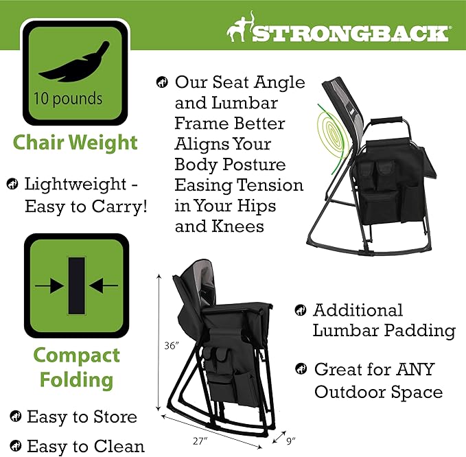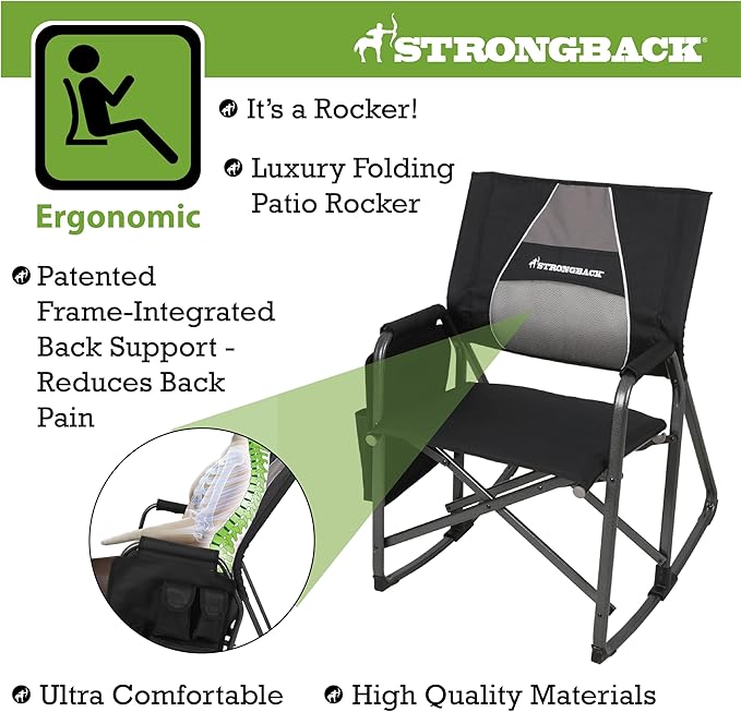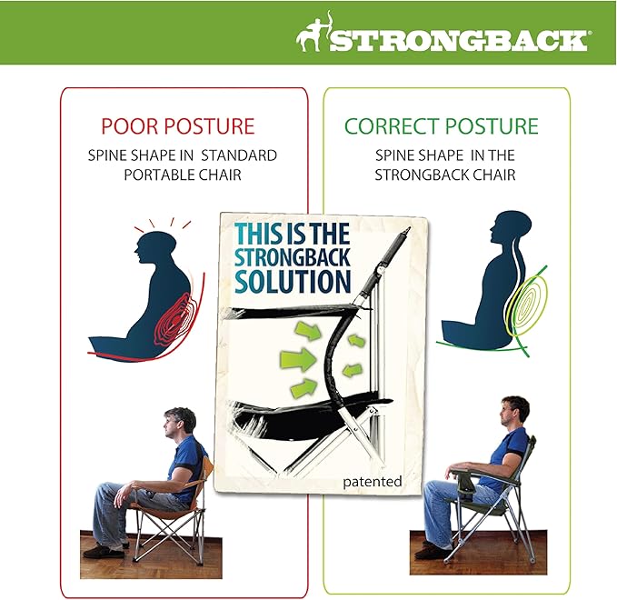 - The difference? All STRONGBACK folding patio and camp chairs have our award-winning, patented ergonomic design built into the frame of the chair itself. This design better aligns your body posture easing tension; with lumbar support for your back and a special seat designed to prevent leg pinch and align the hips. This system provides maximum comfort and relaxation