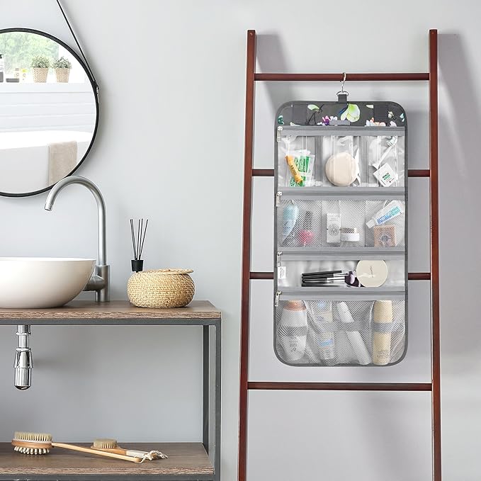 - WATER-RESISTANT & EASY TO CLEAN: Durable polyester with waterproof sections, just wipe clean. Perfect for storing travel-size shampoo, conditioner, face wash, toothbrushes, and even a full-size hairbrush. Keeps everything dry, tidy, and ready for any trip.