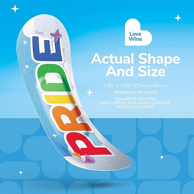 - LGBTQ PRIDE BANDAGE: This 50 piece pack of rainbow shaped Pride bandages help to support the LGBTQ+ community while protecting wounds such as cuts, scrapes, and burns; sticky bandages are perfect for adults