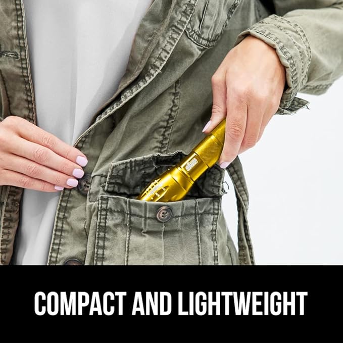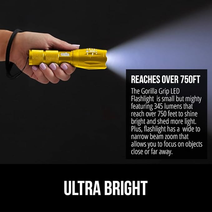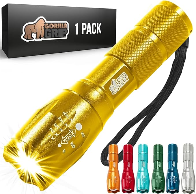 Gorilla Grip Powerful LED 750 FT Water Resistant 5 Adjustable Mode Tactical Flashlight, High Lumens Ultra Bright Battery Life Zoom Flashlights, Small Camping Car Mini Flash Light Accessories, Gold
