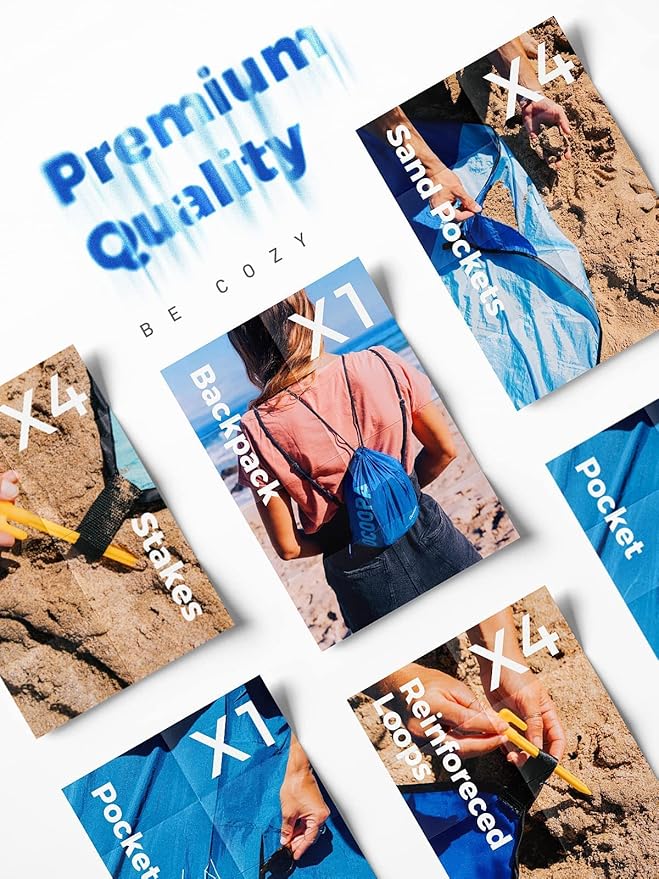 - 🎊 All Accessories Packed. Comes with 4 ABS Plastic stakes and reinforced anchor loops, and 4 corner sand pockets to keep the blanket grounded on windy days. What's more, a carrying bag is also included.