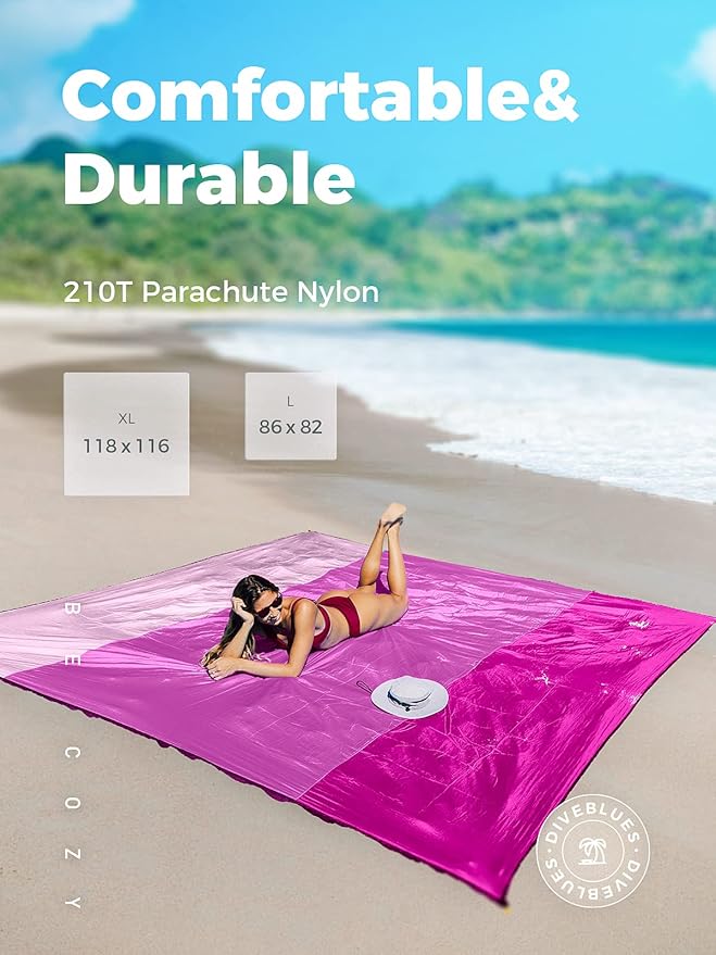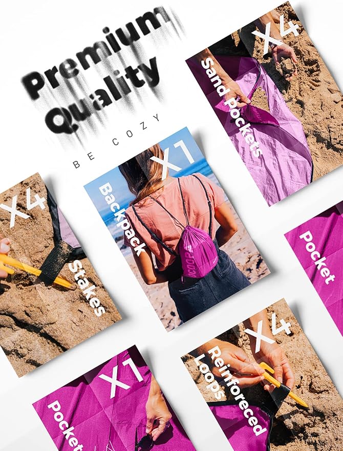 - * User Friendly. Come with 4 ABS Plastic stakes and reinforced anchor loops, and 4 corner sand pockets to keep the blanket grounded on windy days.