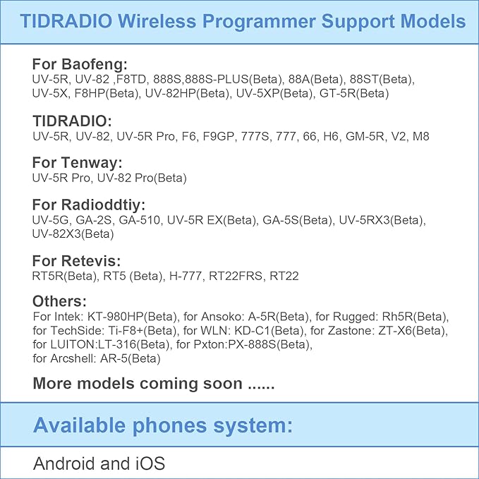 - ✅[Program on Your Phone] One click program your radio on your phone. No computer needed, no driver needed, no need to bother about which programming cable to use. Wireless programmer is also compatible with multiple radio models on the market, not only uv5r.