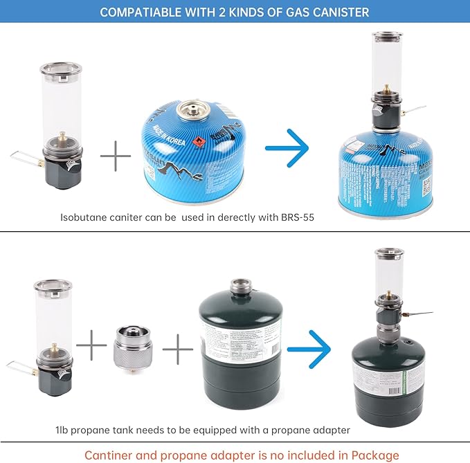 BRS Propane Lantern Gas Lamp Portable Outdoor Dreamlike Candle Lantern Camping Tent Lantern Glass Mantle Lantern BRS-55